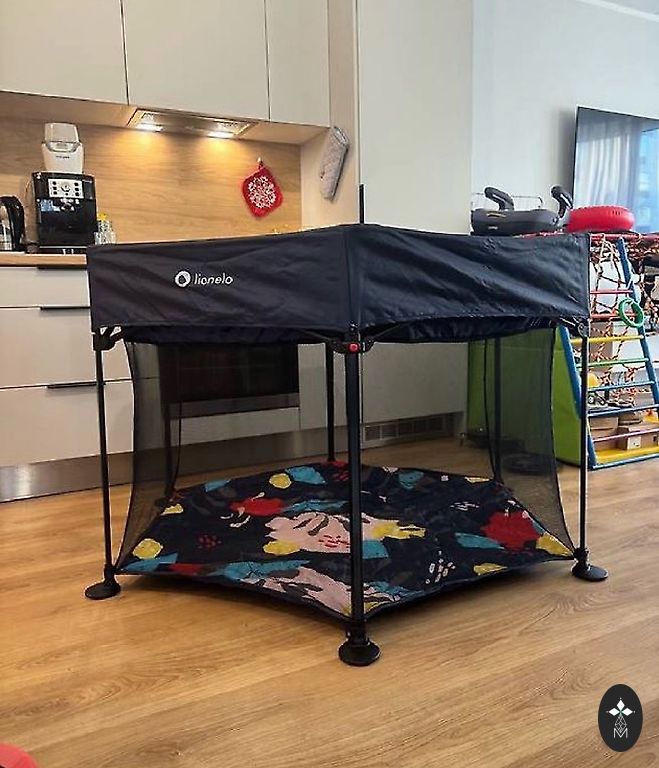 Идеально подходит для использования дома или во время путешествий; Быстрый и легкий механизм сборки; Сетчатые боковые стенки помогают обеспечить хорошую циркуляцию воздуха и в то же время позволяют контролировать вашего ребенка; Боковая сторона с молнией; Колеса позволяют легко перемещать кроватку-манеж с одного места на другое; В комплекте: Сумка для транспортировки. При необходимости могу доставить в пределах Риги/пригородов!