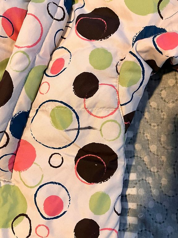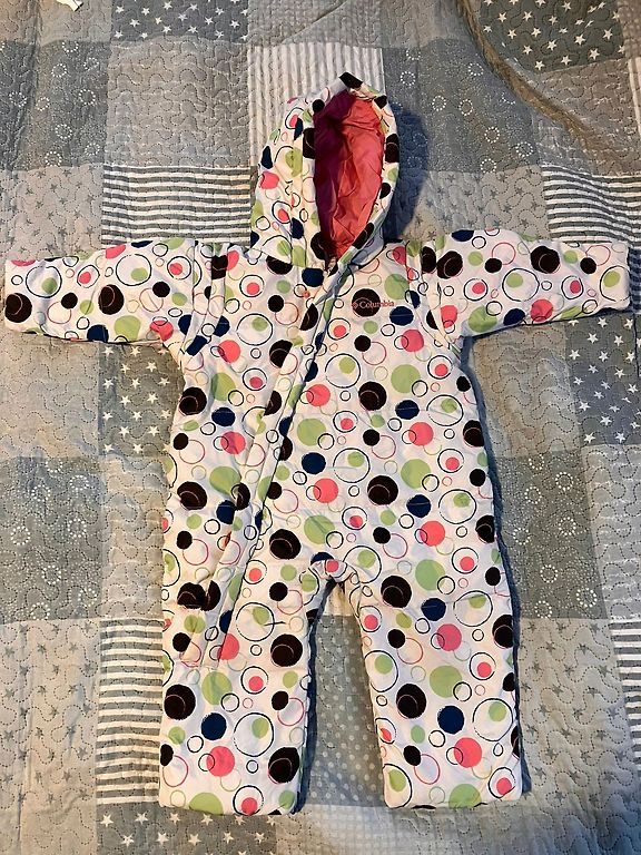 Siltais kombinezons, pēdiņas slēgtas. Trūkst piepogajamie cimdiņi, kas nāca komplektā.