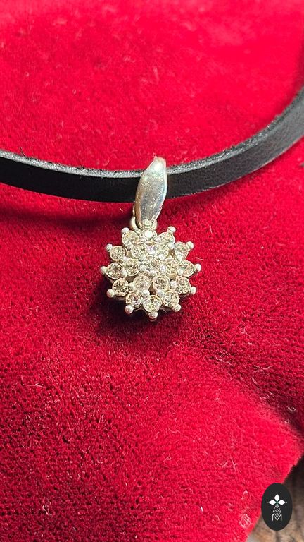 Sidabras 925, briliantas 1,5 mm skersmens, vieno egzemplioriaus juvelyro rankų darbas. Svoris 3,32 gramo, Proves biuro sertifikatas.