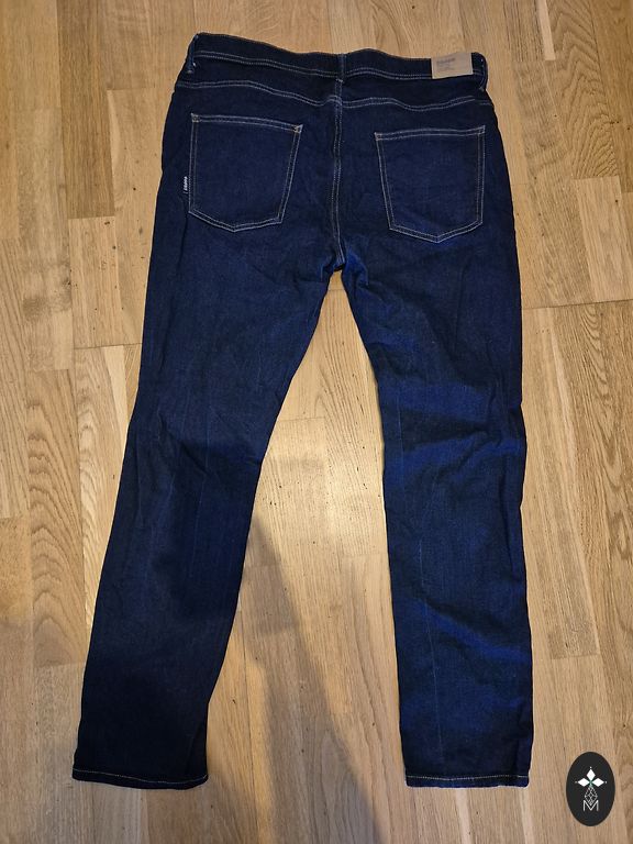 Size W34/L34. I can also measure the length. The denim is not stretchy.