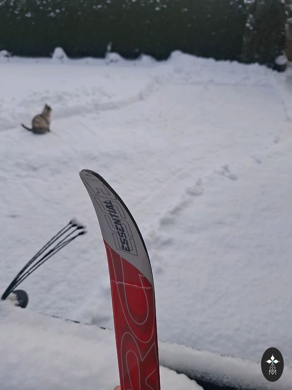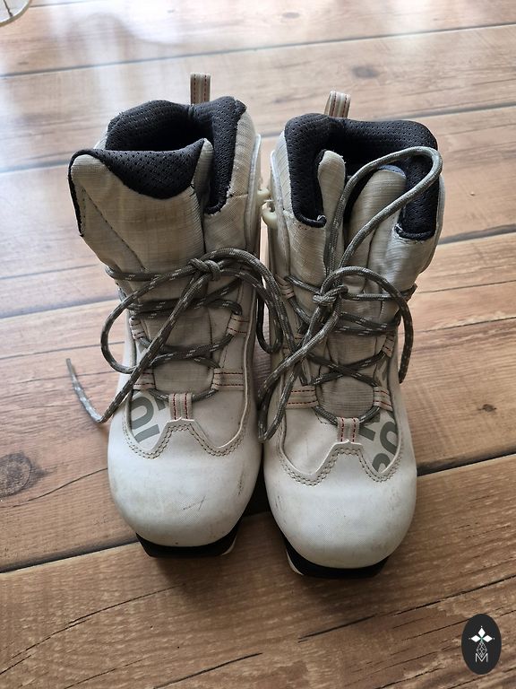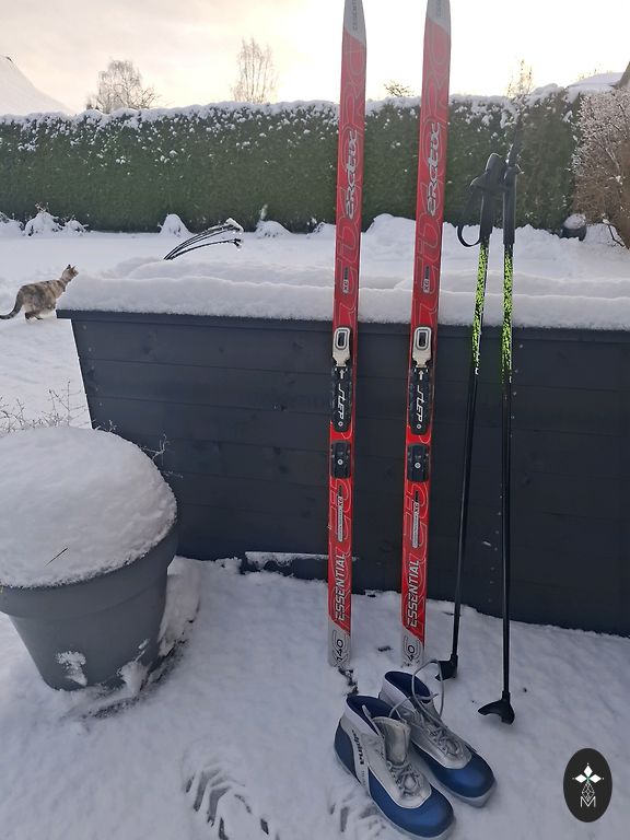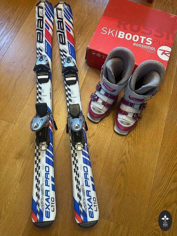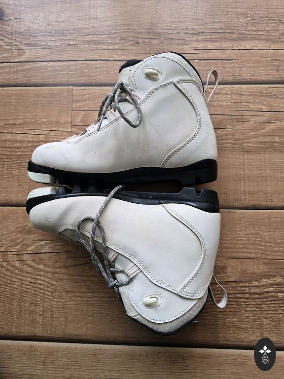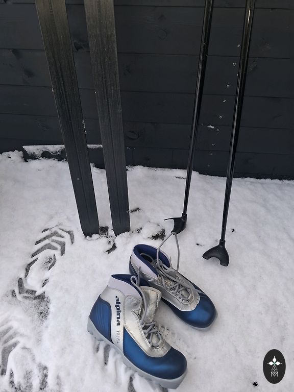 Suusad on kasutatud mitu aastat, kohati on värv maha koorunud, kuid need on töökorras. Pikkus - 130 cm.