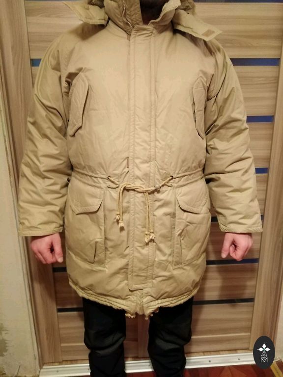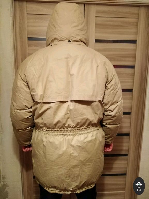 Labai šilta žieminė striukė, viduje užsegamas apykaklė, ilgis 80 cm, krūtinė 58 cmx2, rankovė 66 cm.