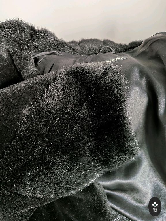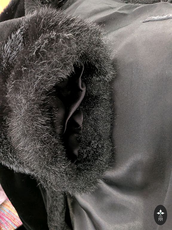 Garais siltinātais kažoks.Garums 134cm.,piedurkne no paduses 41cm, krūtis apkārtmērs 116cm.