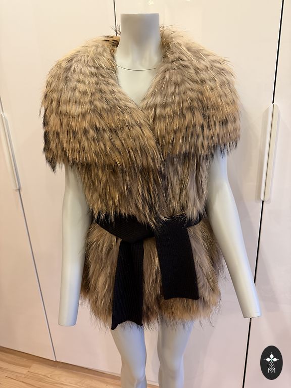 Veltinio liemenė. Perdirbta iš kailio. Būklė gera, tik pamušalas turi dėmių. Žiūrėkite paskutinę nuotrauką. Kreminės spalvos.