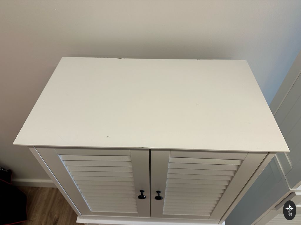 Batų lentyna. Remonto metu sugadinta viršutinė lentyna. Visa kita gerai.