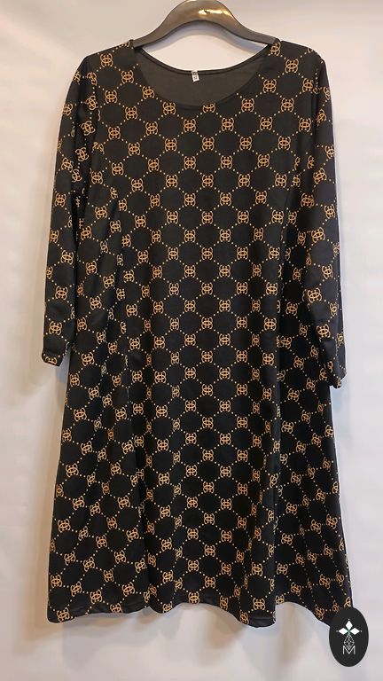 Грудь - 140 см, будет хорошо смотреться от 130 см, бедра - 140 см, длина - 105 см.