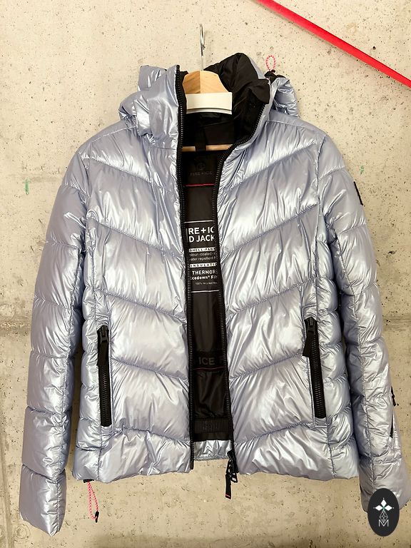 Теплая пуховая куртка в хорошем состоянии, размер S, обхват груди под мышками 94 см, длина рукава 62 см, длина куртки 63 см.