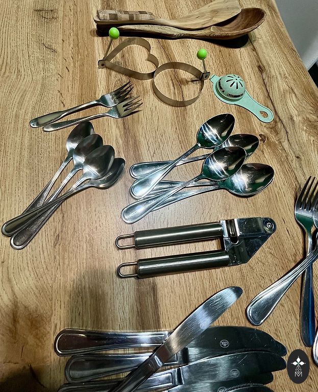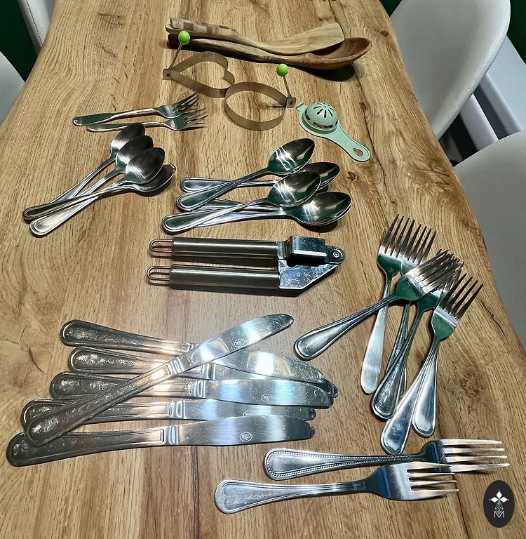 Deserta dakšiņas , 6 gabali , Tallinas juvelieru fabrika , dizainere Liidia Elken, 1960, garums 14,5 cm, niķelis.