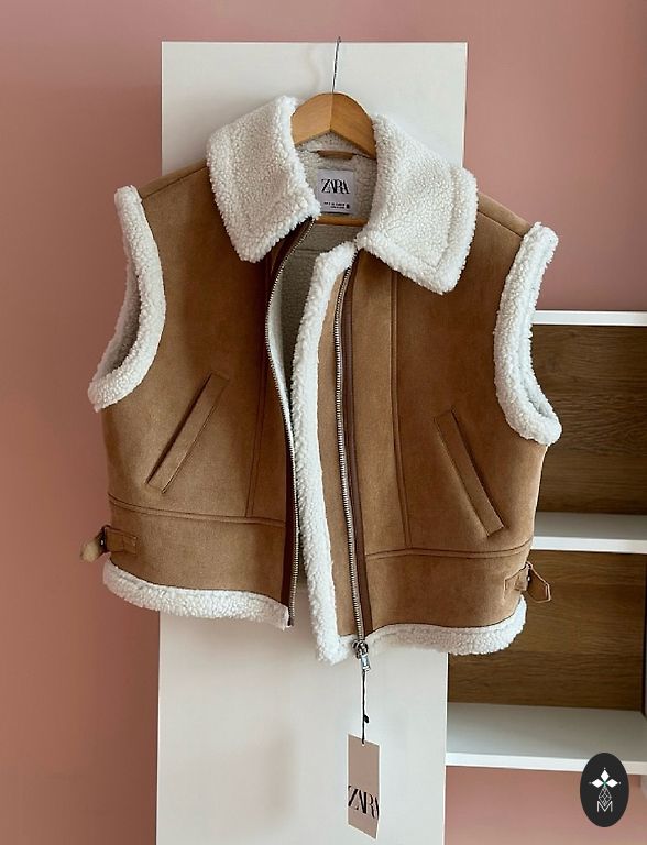 Kengūros nauja liemenė gražios dangaus spalvos, gobtuvas paslėptas apykaklėje.