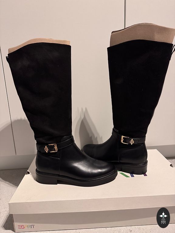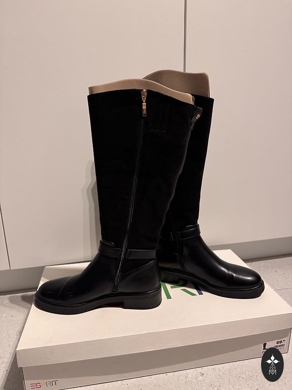 Beautiful and modern black knee-high boots, wide and stable heel with a height of 10 cm. The boots have a platform with a height of 2 cm. Comfortable and very stable in winter. Worn only a few times.