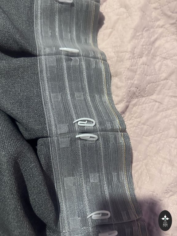 A small defect is visible in the picture, a thread has caught at the bottom of the curtain, barely noticeable.