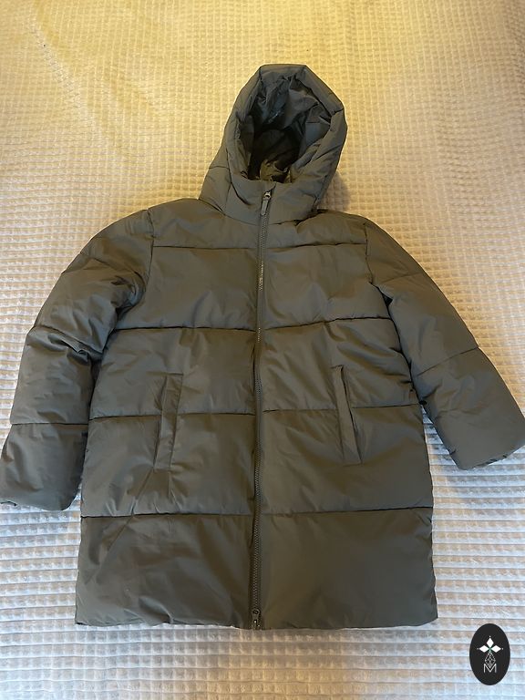 Pirktas praėjusiais metais, bet kadangi buvo kita striukė, ši buvo mažai dėvima. Striukę galima dėvėti kasdien arba slidinėjimui, snieglenčių sportui. Striukė su 10K vandeniui atsparia apdaila, 10a kvėpavimu ir fiksuotu gobtuvu kartu su vidiniu užsegimu, vidinėmis rankogaliais su nykščio skylute, juosmens apsauga, užtrauktuko apykakle. Ilgis 67 cm nuo peties linijos arčiau kaklo. Rankovių ilgis 58 cm ir su vidinėmis rankogaliais 61 cm; Tarp pažastų 52 cm.
