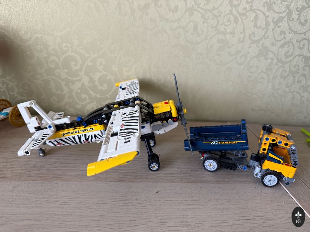 Kai kurie blokeliai trūksta (aksesuarai), kai kurie pakeisti tokiais pačiais kitos spalvos, kai kurių lipdukų nėra ir kai kurie kiti užklijuoti.