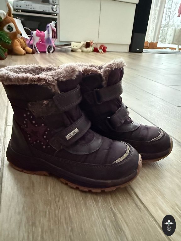 Vilnos pamušalas ir padelis. Pagal gamintojo nurodymus vidpadis yra 160 mm, jei laikomasi nurodymų palikti laisvus 10-15 mm, tada tiks pėdai iki 150 mm ilgio. Vieninteliai naudojimo požymiai guminėse nosyse nuo motorolerio (labai gerai atlaiko traukimą asfaltu, todėl šiuos batus perkame jau 3 kartus). Apdoroti natūralaus vaško drėgmės ir nešvarumų apsaugos (impregnuojančiu) purškalu. Siuntimas neįskaičiuotas.