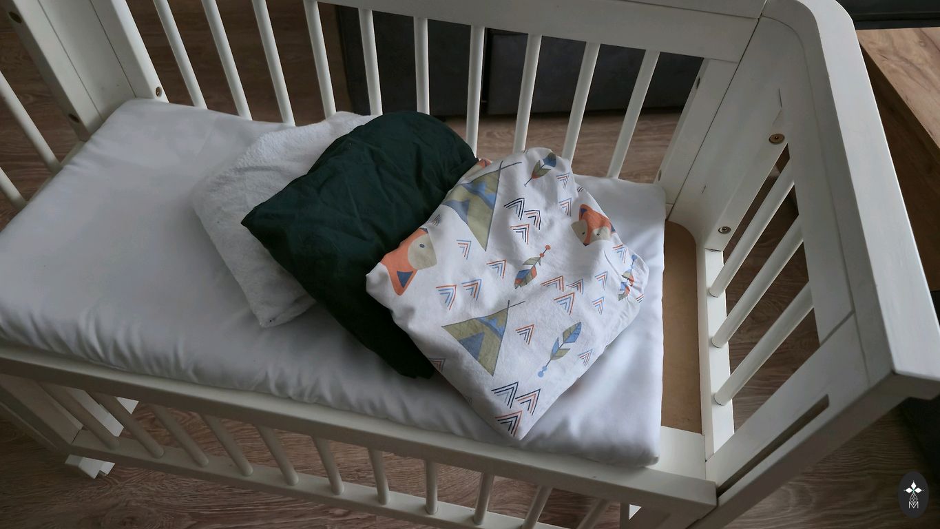 + отдельно могу предложить подушки-бортики, сшитые на заказ из люксового хлопка, которые легко снимаются в любое время, и светло-фиолетовую простыню с резинками по краям. Бортики с простыней 25 евро.