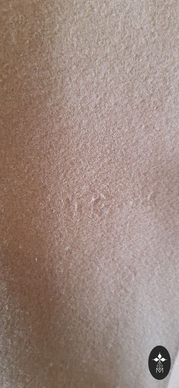 Kopumā labā stāvoklī, atrodu tikai dažus neuzkrītošus diedziņus (skatīt 4.bildi) un mazu pleķīti priekšpusē, kuru iespējams var izmazgāt (skatīt 5.bildi).