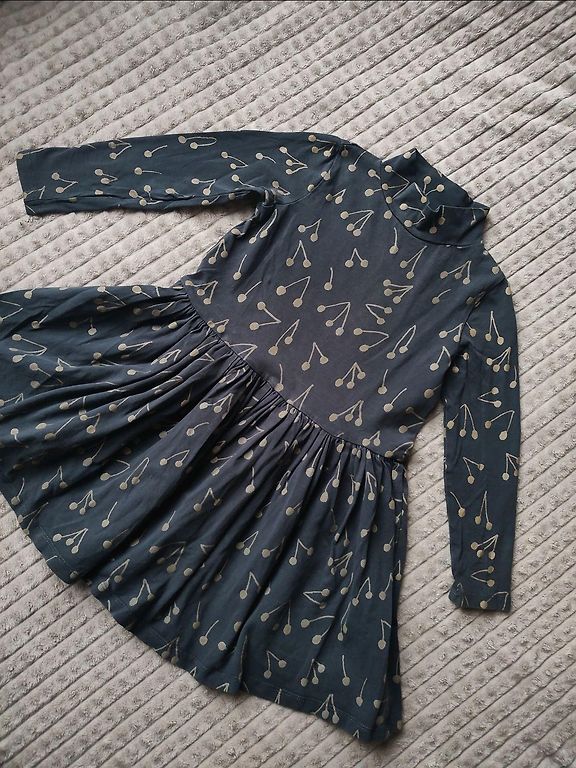 Skaista kleitiņa, biezs samtveidīgs materiāls ar fliteriem, aizmugurē bantīte. Kā jau fliteriem raksturīgi kāds var būt nokritis.