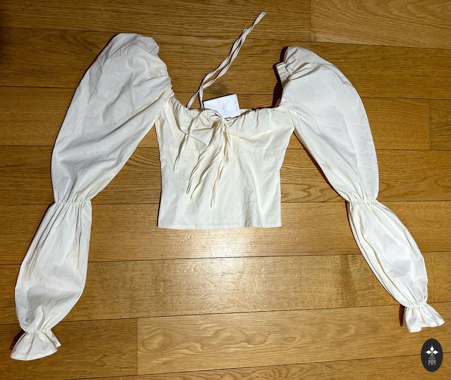 Stilīga blūze ar apkakli, divkāršu pogu aizdari un punktveida apkakli. Piedurkņu gali ar divām pogām. Garums: 71 cm. Ideāli piemērota gan ikdienai, gan elegantām kombinācijām.