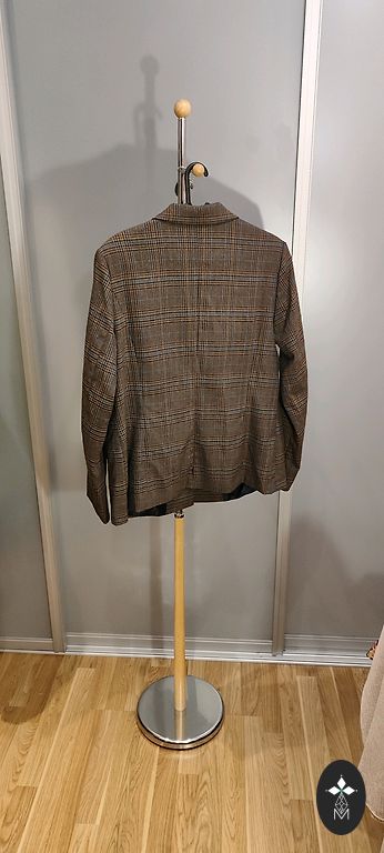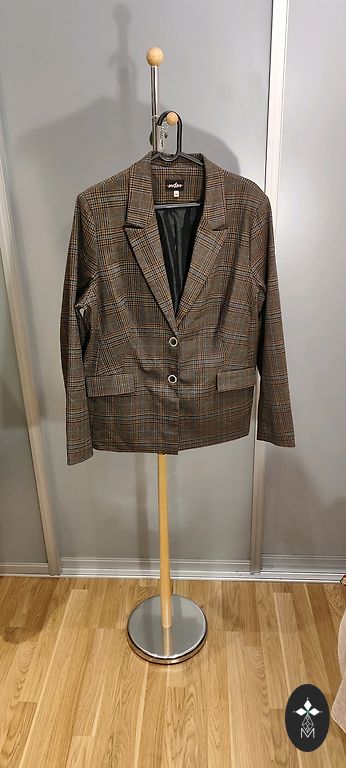 Žakete - vilkta dažas reizes. Plecos polsteri. Pleci 41 cm. Garums 63 cm. Šķēluma nav. 102 cm krūšu apkārtmērs.