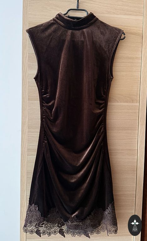 Coo cultes gara kleita S izmers uzvilkta vienu reizi -skaista krāsa-peleki bēšīga-skaisti atspid gaismā-labi izskatās uz auguma-iet nariņas stila uz leju paplatinata