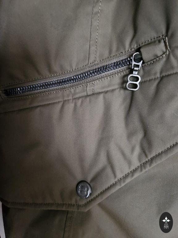 Izmērs XL. Nopirku weekendā, pāris reizes izvilku, tomēr man gribētos mazāku izmēru. Jaka tiešām ļoti silta, ērtā. Patīkama brūna zaļā krāsā. Lielā kapuce, pūka ņemas nost.