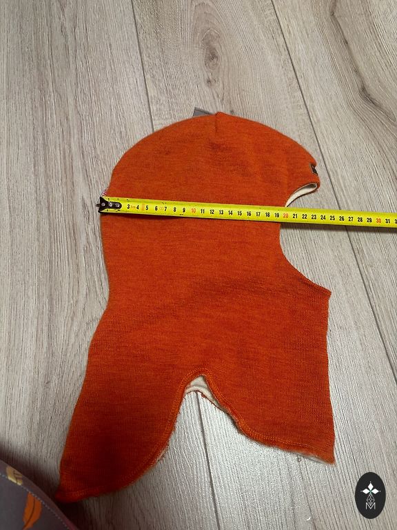 Cepure dubultā, ļoti mīksta, papildu siltinājums ausu zonā. Norādīts 53-55 cm apkartmēram, labi stiepjas.