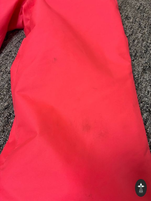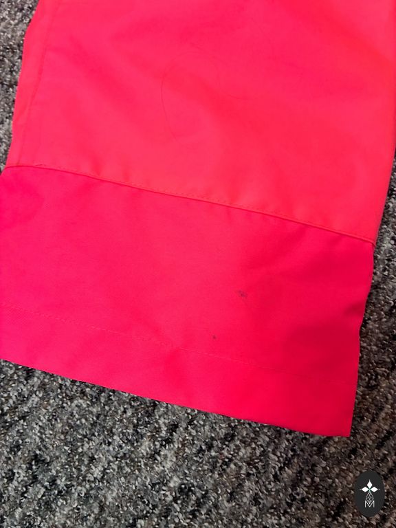 In good condition, defects visible in the photo, a small stain on the pink part and a slightly frayed seam. The child's name is written inside. Size 104. Rain jacket without lining.