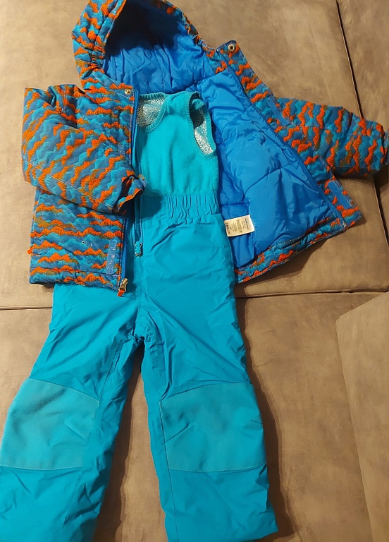 Really comfortable, very warm, breathable overalls set with warm and thermally reflective lining. Bought new, used by one child. The size was adjustable (by unpicking a special lining seam, it was possible to extend, I assume it can also be sewn back to shorten). It fit the child from 120-140cm in height. An excellent option for almost 3 seasons - a set very suitable for winter fun with high pants, and a warm jacket for spring and autumn. There are slight, insignificant signs of wear on the jacket, but the pants are like new. Shipping included in the price.
