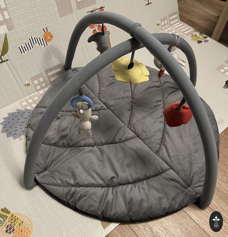 Müüme meie armastatud laste mängumatti. Kõik puhas, puuduvad defektid. Mänguasjad on erinevad - kõristid, peegel, piiksub, krõbiseb. Mänguasjad on eemaldatavad. Matt on väga pehme. Neutraalne hall värv, mis on suurepärane väikestele beebidele, kuna ei tõmba tähelepanu mänguasjadelt kõrvale.