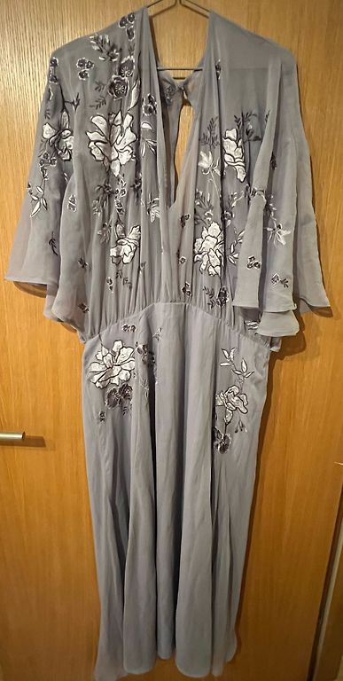Uus kleit. Ostsin siitsamast Andelest. Oli liiga suur. Ütleksin, et suur XL või isegi XXL kindlasti. Rinnaümbermõõt 122, lühikeste osade pikkus kaenla alt 52, pikkade osade pikkus 93. Pildil näeb välja nagu top, aga tegelikult on kleidi/tuunika pikkus. Kangas on hea. Suurepärane ka igapäevaselt jaki all.