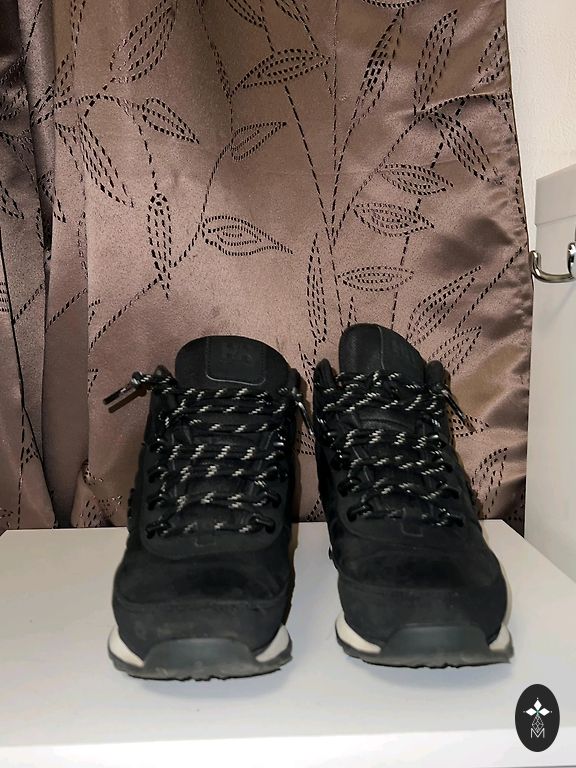 Nuotraukoje matomas pėdos dydis. Yra dėvėjimo požymių, bet negaliu pasakyti, kad jie turėtų kokių nors trūkumų. Niekur nematau įbrėžimų. Zamšo dalys, kaip ir zamšas, nėra kaip naujos. Mano nuomone, labai geri batai. Negaliu pasakyti, kokią šalčio temperatūrą jie atlaiko. Sutraukimo mechanizmas taip pat yra geras.