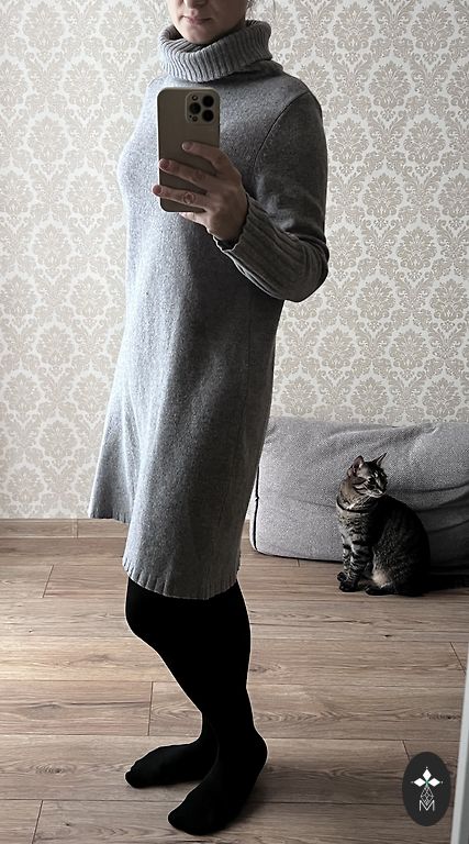 Itališka plona vilnos, megzta suknelė, dydis 16/18. Ilgis 110, po pažastimis plotis 55/2, tiesus kirpimas, rankovių ilgis 27, plotis 15/2, suknelė be pamušalo, labai maloni medžiaga (tampri).