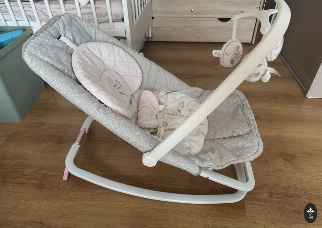 Kūdikio supynės, supasi, masažuoja, groja muzika, šviesos žibintas.