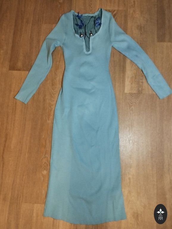 Nauja suknelė, su aukštu apykakle. Dydis nurodytas UK 18, matmenys: ilgis apie 90cm, krūtinė apie 57cm, audinys gofruotas, elastingas.
