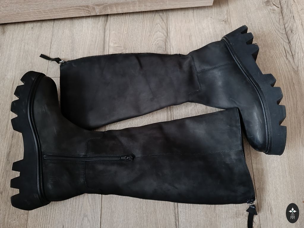 Zābaki ir vilkti tikai vienu reizi telpās, līdz ar to ir teicamā stāvoklī, bez redzamām nolietojuma pazīmēm. Zamša ir kopta, forma lieliska.
