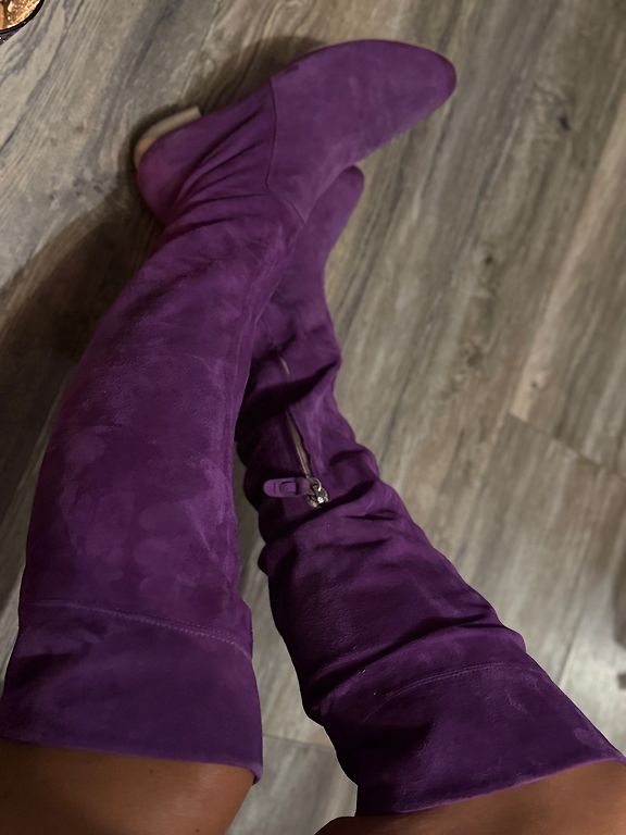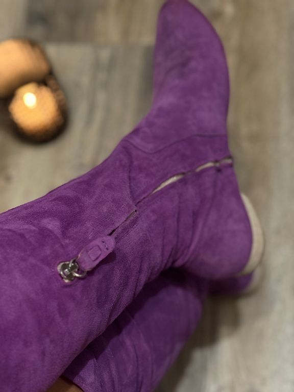 Сапоги надевались всего один раз в помещении, поэтому находятся в отличном состоянии, без заметных следов носки. Замша ухоженная, форма сохранена идеально.