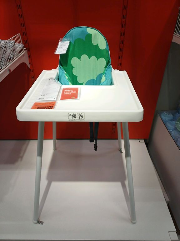 Ikea vaikiška aukšta kėdutė, spalva daug kur nusitrynusi. Bet galima dar naudoti ir naudoti, arba perdažyti. Yra Imantoje.