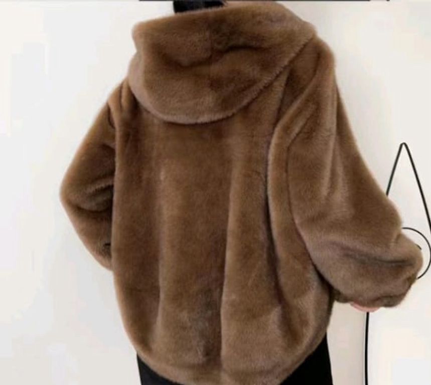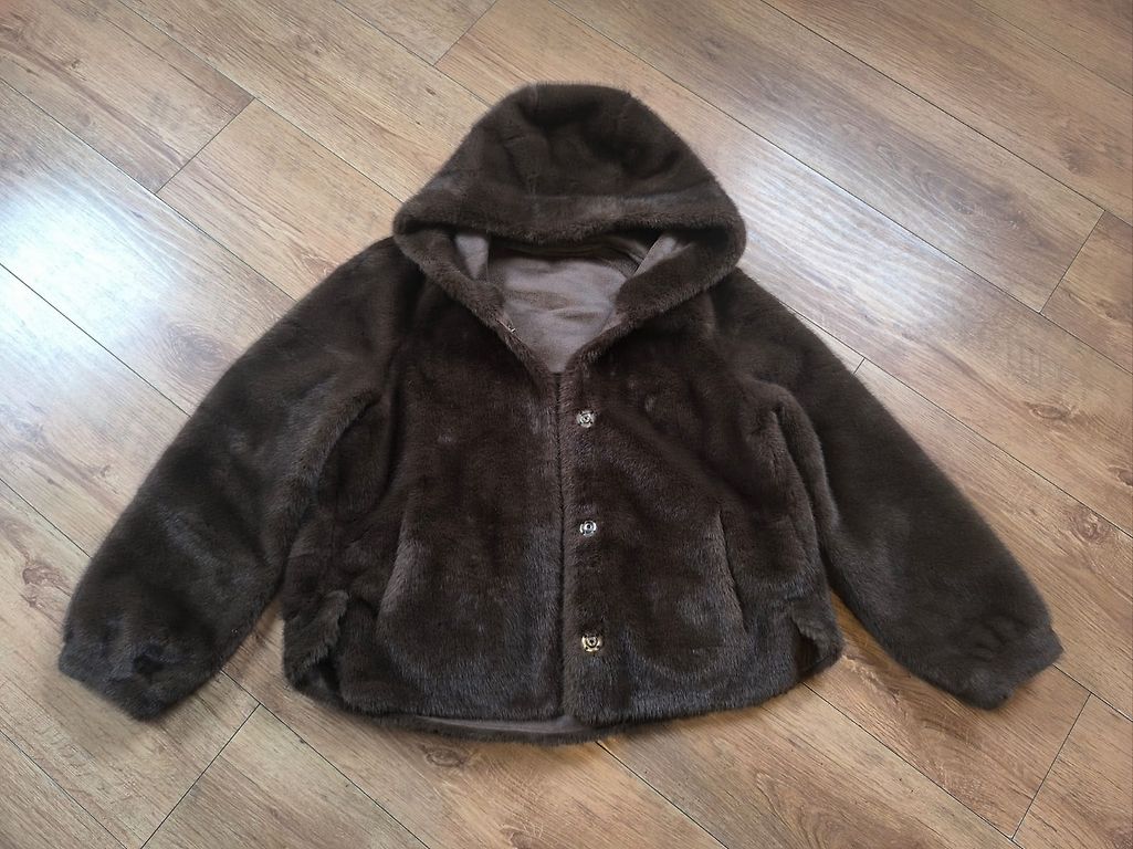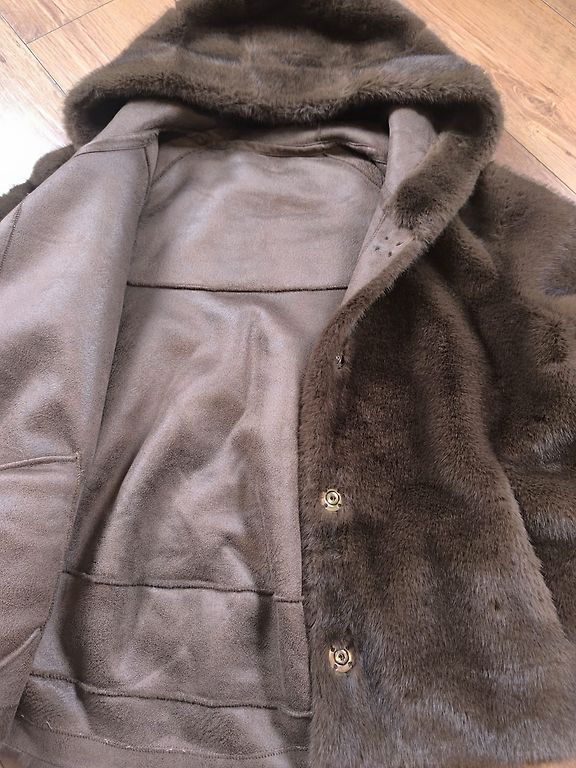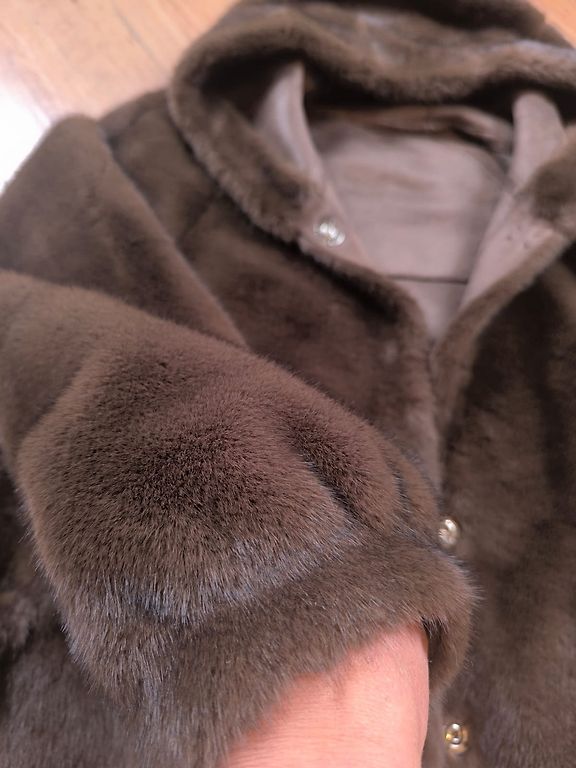 Light, white, natural leather (racoon) coat. Looks beautiful with an evening dress. Back length 78 cm, chest circumference 102 cm, shoulder width 43 cm, sleeve length 51 cm.