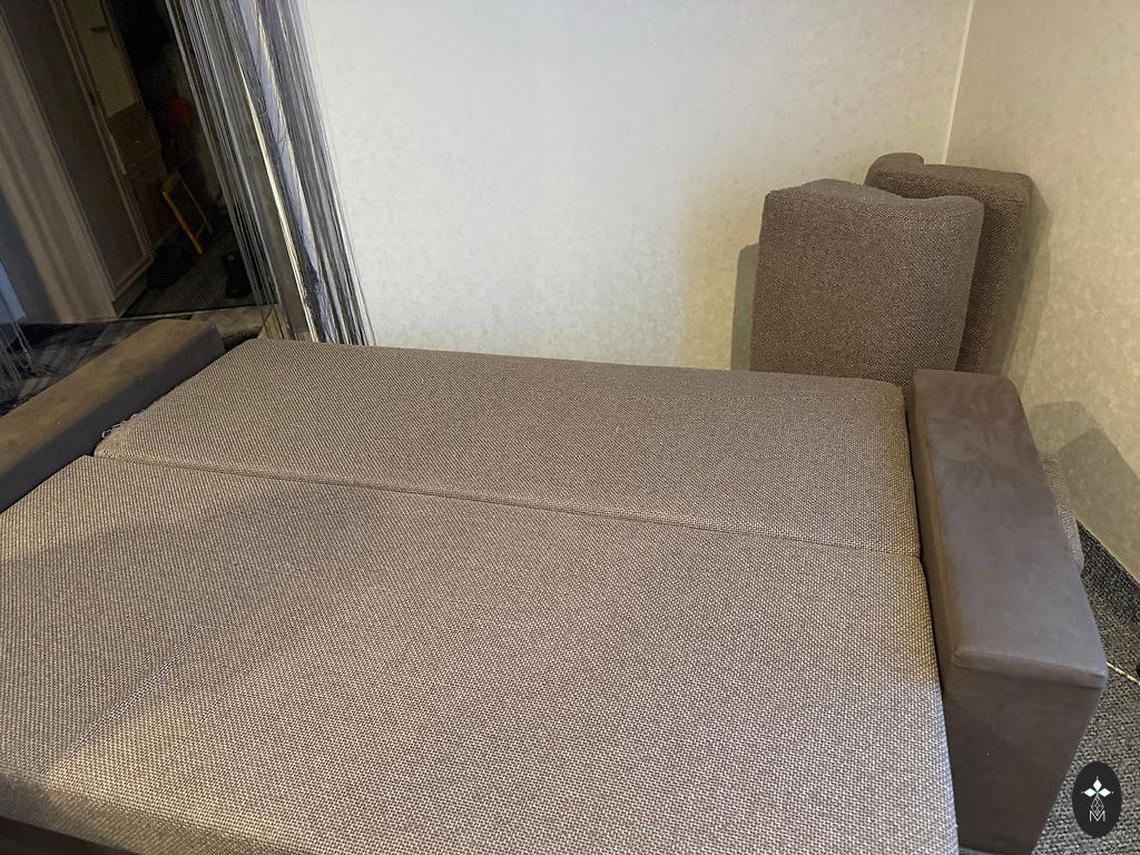 Liels dīvāns , apakšā veļas kaste. prasmīgas rokas var salanot izvelkamo mehānismu. Jaucas ārā dīvāns un sastāv no 2sēžamajām daļām.