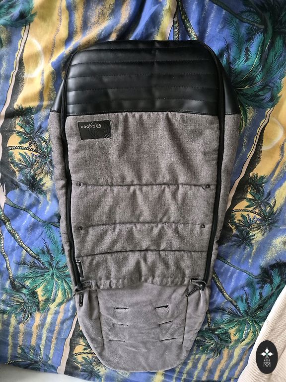 Коляска Cybex Platinum, серый мешок для ног и сиденья. Отлично защищает от ветра и холода. Чистый и аккуратный. Незаметное темное пятно слева вверху, но его невозможно заметить даже при любом освещении.