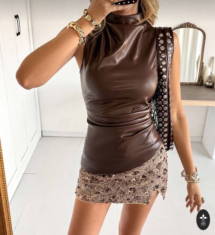 Viršutinė palaidinė su ilgomis rankovėmis ant vieno peties.