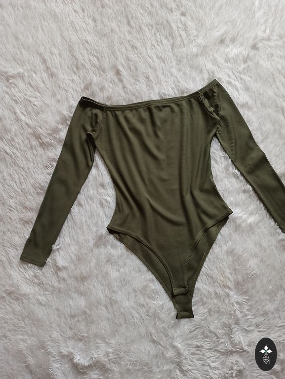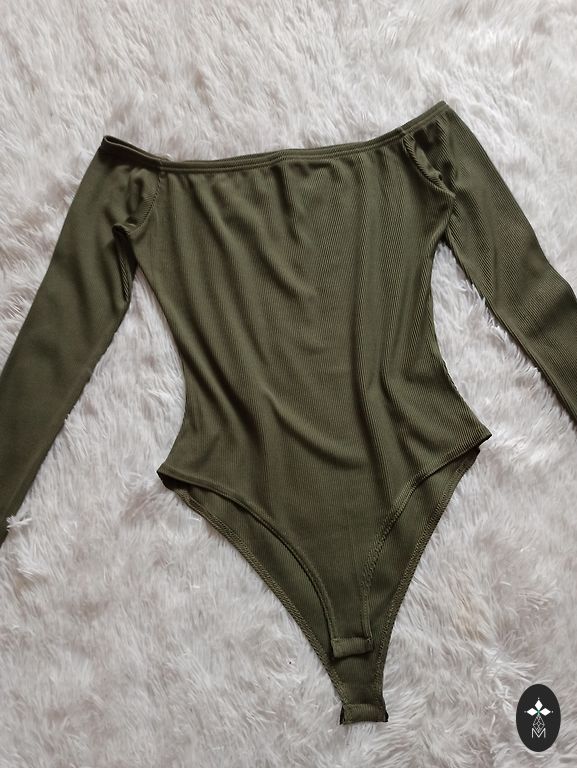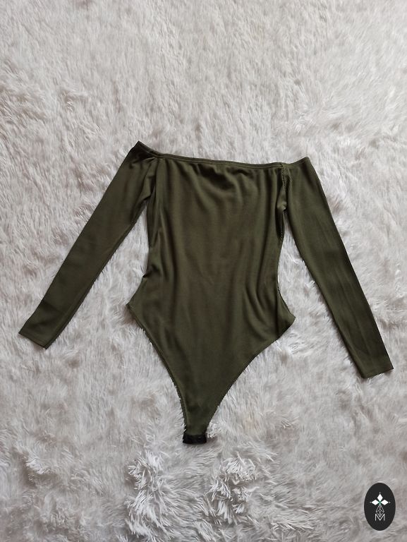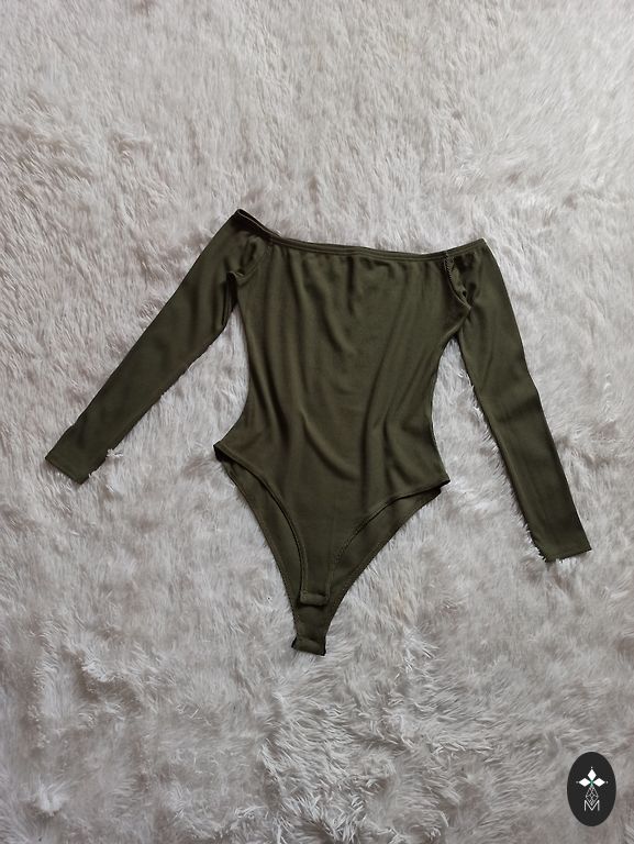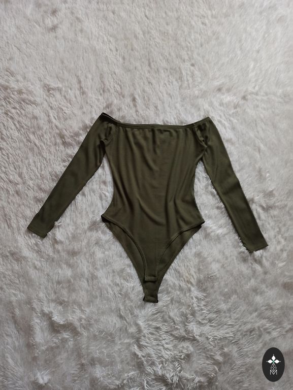 Shimmering off-shoulder bodysuit with long sleeves
