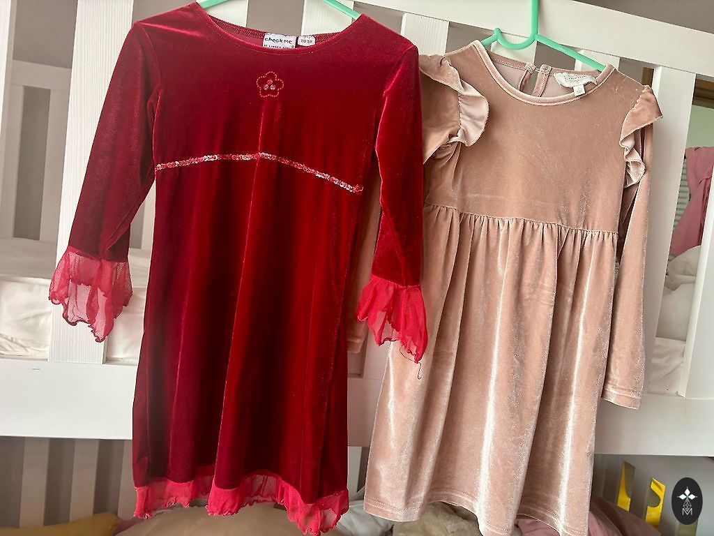 Divas kleitiņas, par vienu cenu, viena, looti skaista svētku kleita ar tillu, kas īpaši izceļas. Otrā meitenes iemīļotās varones kleita-Elza :)