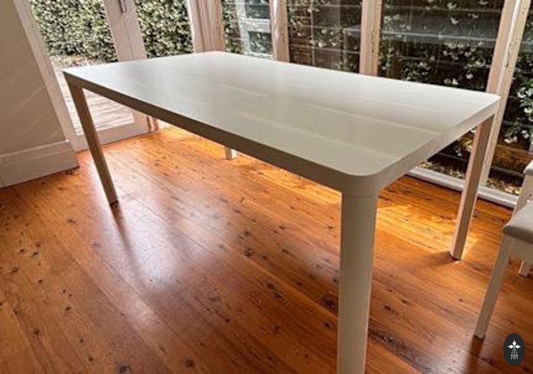 IKEA izvelkams balts virtuves galds, parastais garums 130cm, izvelkamais garums 190cm, platums 80cm, augstums 75cm, pāris skrāpējumi un pleķi uz virskārtas, pašizvešana, Mežaparks.