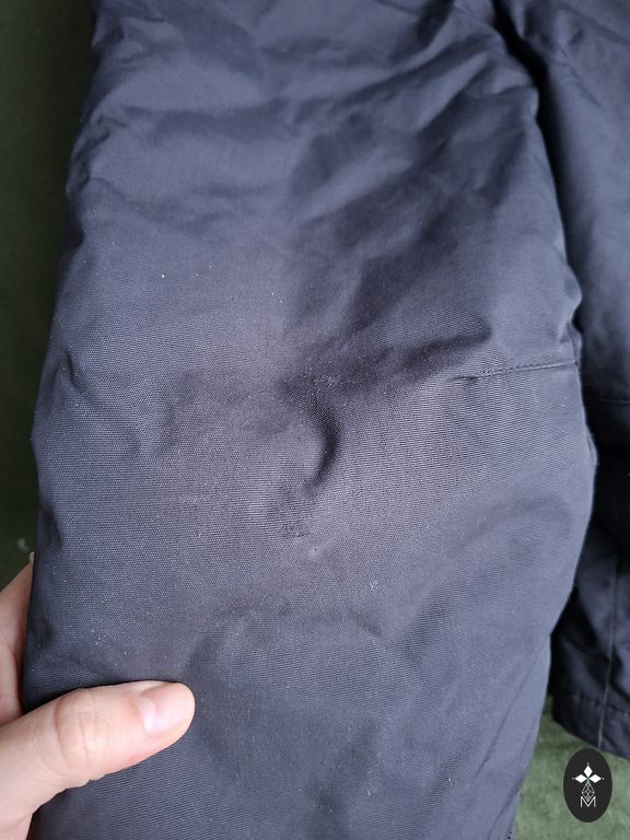 Ainsad puudused, külgedel olevatel helkuritel on värv veidi kulunud ning viimasel pildil on näha ühel püksisäärel väike auk! Ülejäänud on ok!