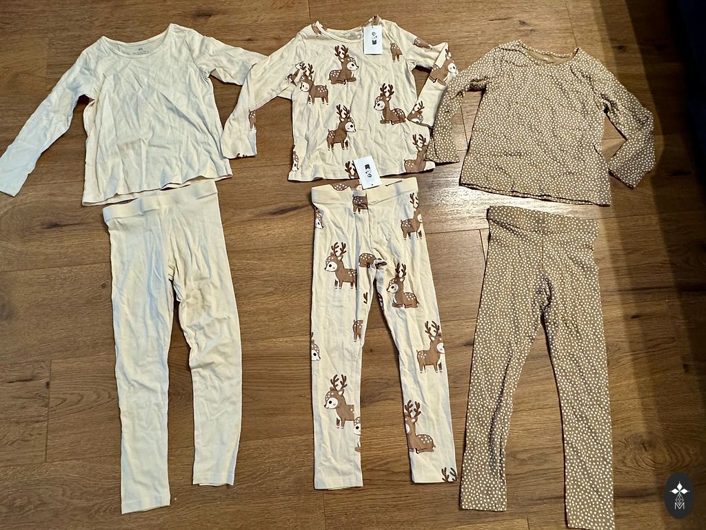 Trīs jauni komplekti . Vienas bikses george , pārējais H&M. Viss jauns . 110-116 cm