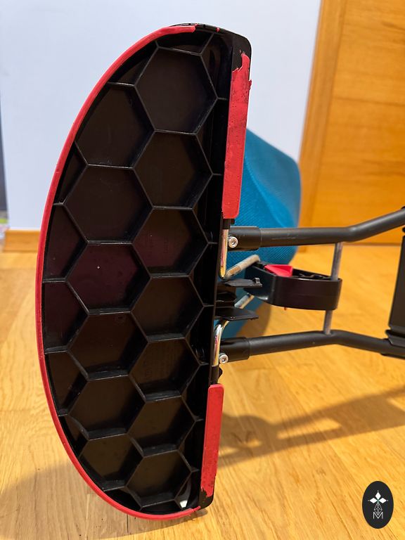 Sēžamā daļa manāmi palietota-vizuāli defekti. Viena kamera laiž gaisu, ik pa pāris dienām jāpumpē. Ar šiem ratiem ir super viegli braukt, īpaši ziemas sezonā. Līdzi došu mazo ratu somu, moskītu tīklu, telefona turētāju, siltos ratu cimdus un Lodger ratu maisu ar izņemamu silto iekšu.