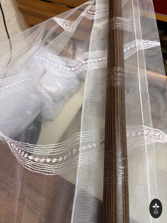 Шторы с вышитыми цветочками.