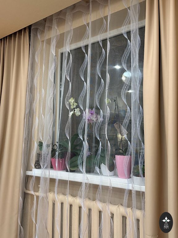 Шторы с вышитыми белыми и пудровыми цветами. Высота 2м, ширина 1.25м. Вверху лента для крючков и стягивания. Цена за одну, но есть возможность приобрести также две и три, соответственно умножив цену на количество штук.