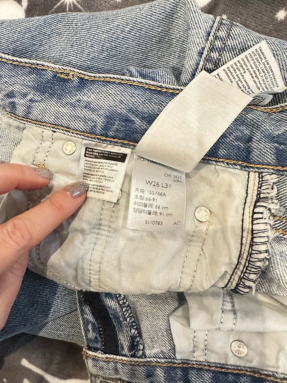 3 paari teksapükse, erinevates sinistes toonides.